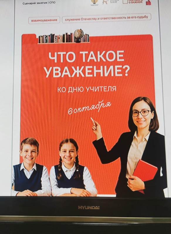 «Что такое уважение? Ко Дню учителя»06 Октября 20256 октября 2025 года в филиале ФГБОУ ВО СГУ в г. Анапе Краснодарского края состоялось внеурочное занятие на тему «Что такое уважение? ко Дню учителя». Занятие проводилось в рамках проекта «Разговоры о важном». Цель занятия: формирование представлений о значении уважения в человеческих взаимоотношениях, о роли и значении профессии учителя для общества и каждого человека; формирование осознанного уважительного отношения к людям, результатам их труда, обществу, культуре и окружающей среде; повышение мотивации к ответственному поведению и самосовершенствованию. Занятие под руководством педагога Кузнецовой Ларисы Николаевны проходило в форме дискуссии с использованием видеоматериалов, интерактивных и практических заданий. Основные смыслы темы занятия раскрыты в том, что уважение — это признание достоинств личности и основа гармоничного развития каждого общества; учитель играет важную роль в формировании личности и жизненных ценностей ребенка наряду с семьей. После просмотра и обсуждения видеоролика об уважении как многогранном понятии педагог организовала выполнение интерактивного задания «Гордость России». Ребятам были заданы вопросы для обсуждения: За что мы уважаем известных людей, о которых узнали в интерактивном задании? Кого из знаменитых наставников и их учеников в истории России вы знаете? Какую роль играет уважение в профессиональной среде? Педагог подвел обучающихся к пониманию, что каждый человек обладает своим мнением и отличным от других жизненным опытом, но, несмотря на это, мы должны уважать друг друга, слушать и стараться понять другую точку зрения. Итогом занятия стал вывод: преподаватель или наставник — это не просто человек, который помогает освоить мастерство или разобраться в сложной технологии. Для студентов он является проводником в профессиональную среду. Уважение — это ценность, которая помогает поддерживать гармонию в отношениях. Мы говорим, что по-настоящему уважаем человека, когда осознаем его право на личное мнение и даем ему свободу для самовыражения. Все мы несем ответственность за свои слова и поступки. Уважительное отношение в семье и коллективе формирует базовые навыки взаимодействия с людьми, необходимые для самостоятельной жизни. |